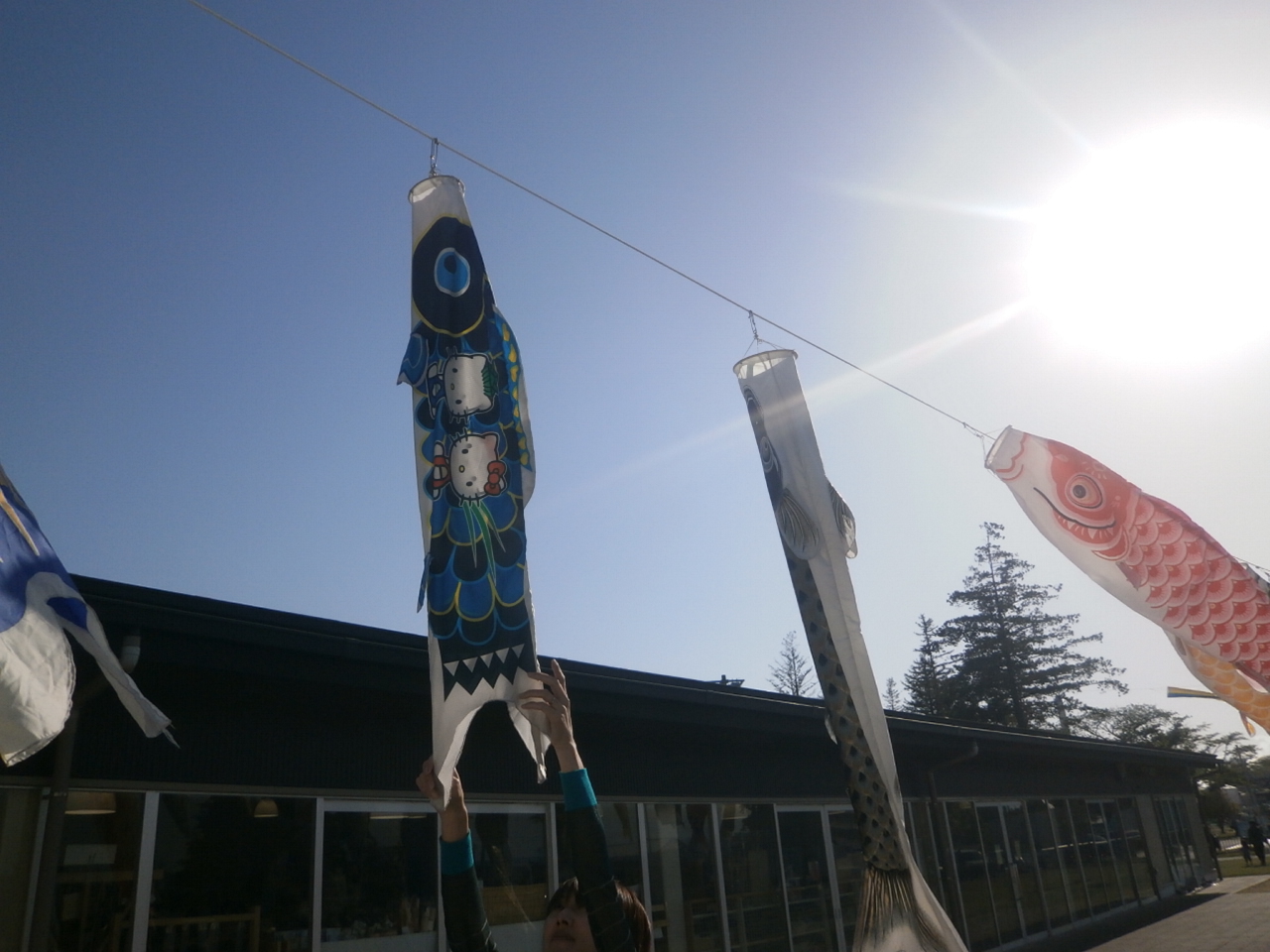 今日はこどもの日だ。道の駅でちょっと休憩。ここで鯉のぼりがいっぱい飛んでました。